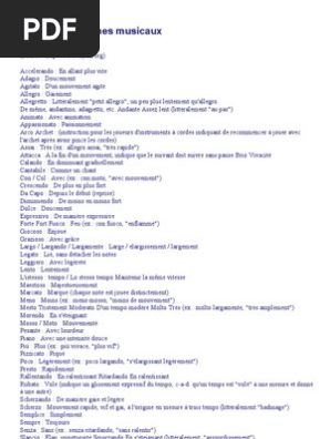 Lexique Des Termes Musicaux Tempo Instruments De Musique - Mistral gagnant (renaud), extraits pris sur le vif.